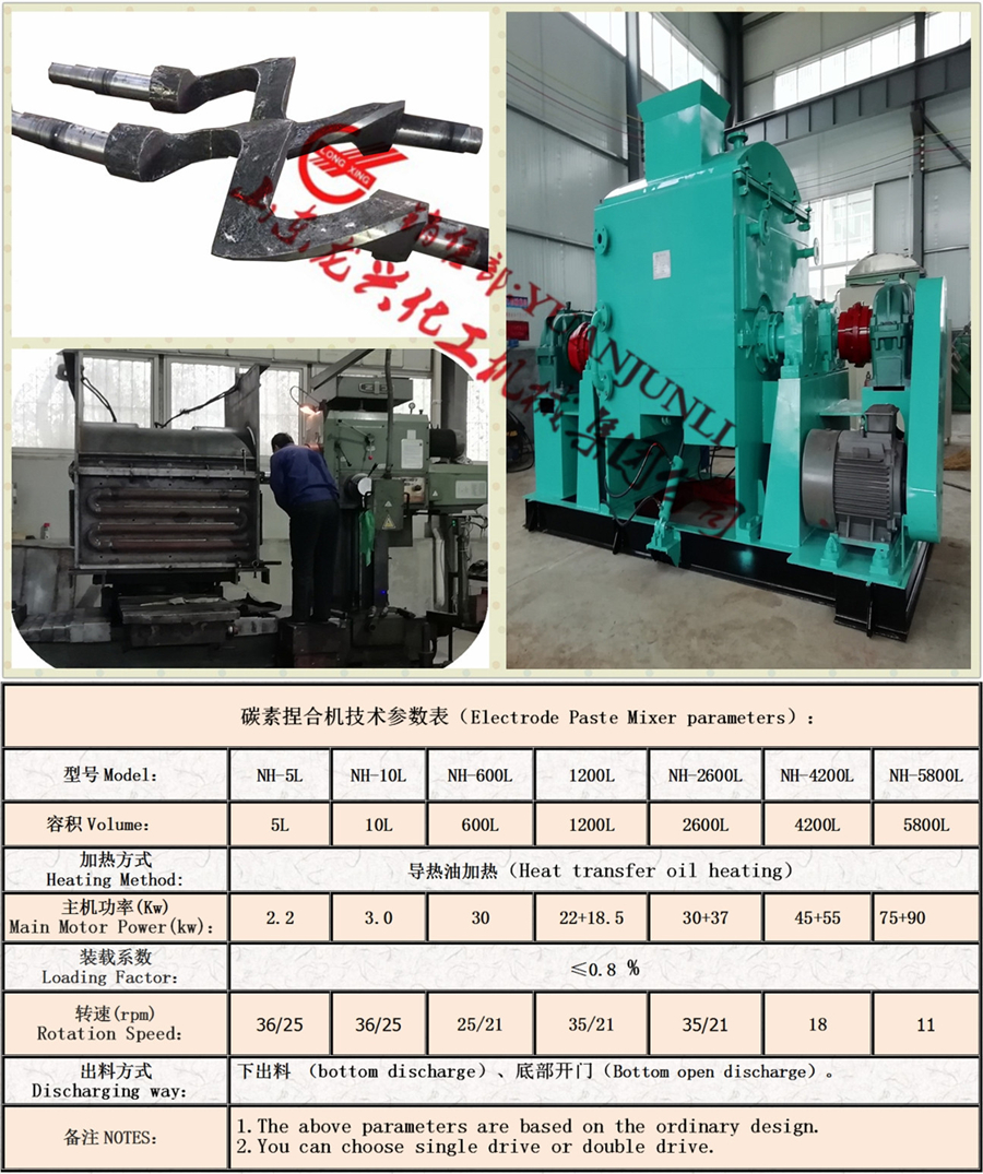 碳素捏合機(jī)(混捏鍋)用于碳素、電碳、鋁、石墨廠等工礦企業(yè)生產(chǎn)的各種規(guī)格的石墨化電極、陽(yáng)極糊、高純度石墨、電碳刷及高爐塊等產(chǎn)品,通過(guò)一對(duì)不同轉(zhuǎn)速攪拌漿所產(chǎn)生強(qiáng)烈的剪切、擠壓及攪拌,以石油焦、無(wú)煙煤、冶金焦為主要原料,煤瀝青為粘結(jié)劑所構(gòu)成的物料充分混捏,達(dá)到物料均質(zhì)及細(xì)化之目的。