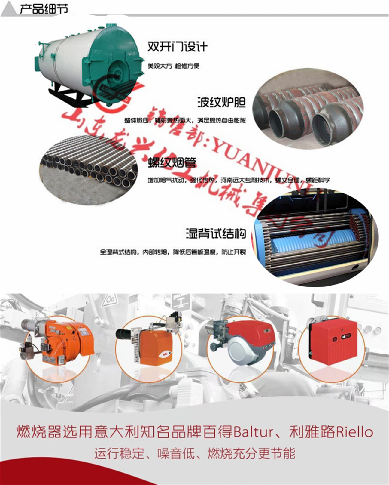 山東龍興集團是一家導熱油熱載體及熱水、蒸汽加熱鍋爐設備的大型集團化生產(chǎn)企業(yè),三十年來我公司致力于系列燃油、燃氣有機熱載體爐/導熱油爐,電加熱導熱油爐,燃油燃氣蒸汽鍋爐,燃油燃氣熱水鍋爐及蒸汽發(fā)生器,余熱換熱等設備的開發(fā)設計與制造。集團銷售部長原君禮現(xiàn)真誠為您推薦0.5-30噸系列燃油燃氣蒸汽鍋爐,歡迎您致電和微信(手機同號)咨詢?。?/span>
