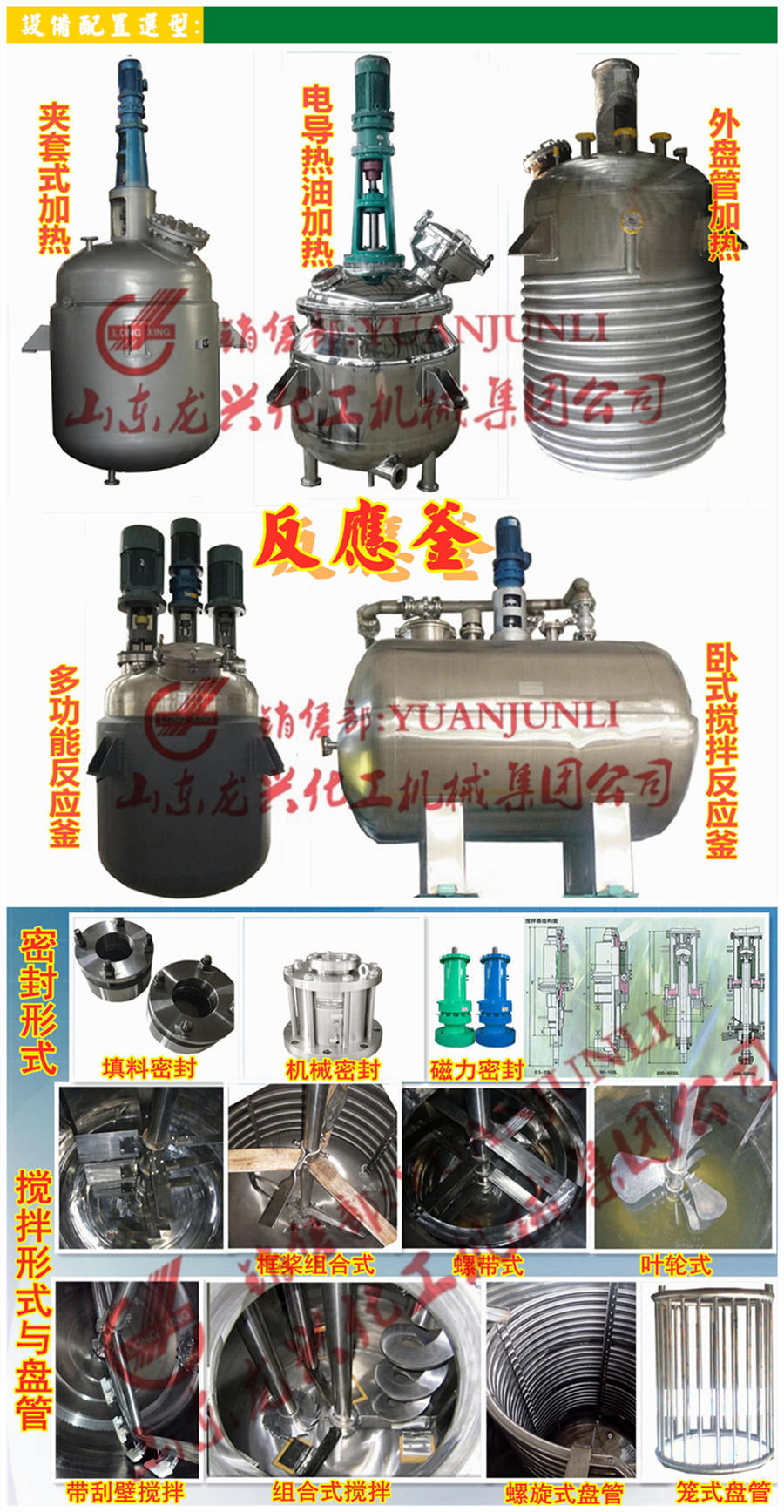 山東龍興集團(tuán)是江北系列反應(yīng)釜的大型集團(tuán)化生產(chǎn)企業(yè)廠商,幾十年來我公司致力于不銹鋼及碳鋼等材質(zhì)的系列多功能混合攪拌釜罐、搪玻璃(瓷)反應(yīng)釜罐、高壓磁力攪拌反應(yīng)釜罐、電加熱反應(yīng)釜罐、汽加熱反應(yīng)釜罐、導(dǎo)熱油加熱反應(yīng)釜罐、半圓管/外盤管加熱反應(yīng)釜罐、水加熱反應(yīng)釜罐、零距離加熱反應(yīng)釜罐開發(fā)設(shè)計(jì)與制造,該系列反應(yīng)釜主要應(yīng)用于水解、中和、蒸餾、儲(chǔ)存、合成、加聚、縮聚、烴化、聚合、縮合、固氮、萃取、聚合、氫化、硝化、鹵化、磺化、氨化、?;⑶杌然し磻?yīng)過程。龍興集團(tuán)銷售部長原君禮現(xiàn)真誠為您推薦該款不銹鋼反應(yīng)釜,關(guān)于不銹鋼反應(yīng)釜技術(shù)信息如果不夠全面,歡迎您致電和微信(手機(jī)同號(hào))咨詢!