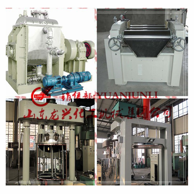 反應(yīng)釜—107膠生產(chǎn)→捏合機--玻璃膠基料制作→三輥機--物料研磨→強力分散機/行星攪拌機/動力混合機--分散、攪拌、混合、反應(yīng)、抽真空→液壓出料機--液壓出料→全自動/半自動灌裝。用戶可根據(jù)實際需求對設(shè)備進行選型。
